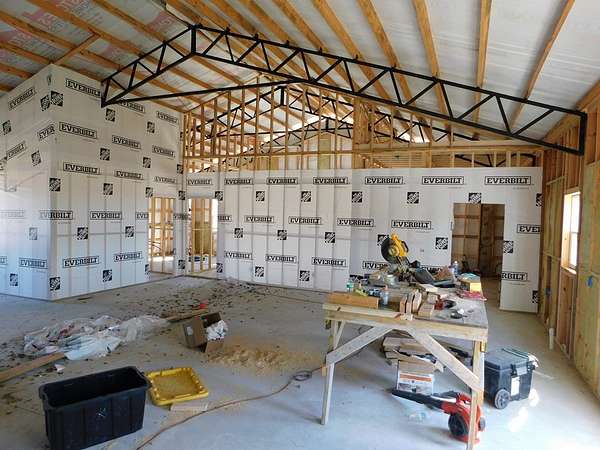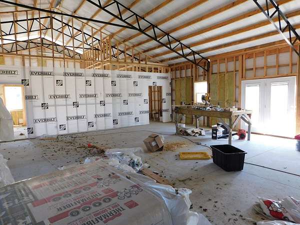 Exceptional opportunity to finish a spacious barndominium and make it your own! Located on 2 fenced & gated acres! The interior boasts 2,400 sq ft., with an open floor plan, dramatic high ceilings, and exposed metal beams. The exterior shell, roof, and windows are complete, the framing, plumbing, and electrical partially complete. Don't miss this chance to tailor your dream barndominium!