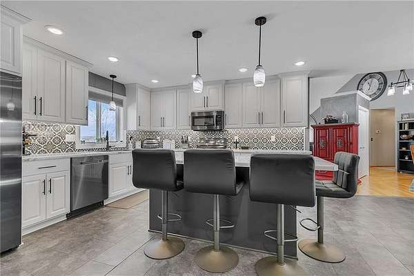 Your own private 3.8 acre oasis awaits! Enjoy boating all day on the Chain of Lakes starting out from your own private dock and beautiful backyard! Easy access to the lake by using the gravel drive down to the water or walk down behind sheds. Property also offers an RV parking pad with electric hookup! Gorgeous updated kitchen and dining room creates a comfortable flow with modern finishes and more natural light. Another special feature in this year round lake home is 4 main level bedrooms! With a finished bathroom in the lower level, there is plenty of extra space for someone to incorporate more bedrooms with the addition of egress windows. Lower level is currently used as a recreational area, with LOADS of storage space, a workout area, and additional living room. If you are looking for space and privacy on the lake, this is your chance!