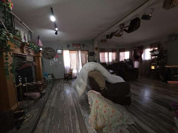 Est $482/mo3BD 2BA Manufactured home on 2.29 Acres north of Granby. Sits off the road in private setting surrounded by mature trees for lots of shade. Home has an attached front and side deck. Owner installed new H/A unit in recent years. There is a large open living/dining area with wood burning fireplace. Kitchen is large with lots of cabinets. Master bedroom suite has a large bathroom and walk in closet. Home needs TLC but a great opportunity. Note: This is not the original location of the home. Dishwasher is not functioning.