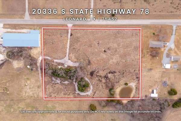 Est $3,724/moLeonard is an up and coming community and this Land has access to WATER!!! Beautiful 5 acres of land is unzoned with over 500 lineal feet on Highway 78, it will make a Great Location for a Business or Home. This property is conveniently located to Fannin County's 2 new lakes: Bois D'arc Lake and under construction Ralph Hall Lake. This is a MUST SEE !!! ALL INFORMATION DEEMED RELIABLE BUT NOT GUARANTEED. BUYERS AGENT TO VERIFY ALL INFORMATION. NEW SURVEY WILL BE NEEDED.
