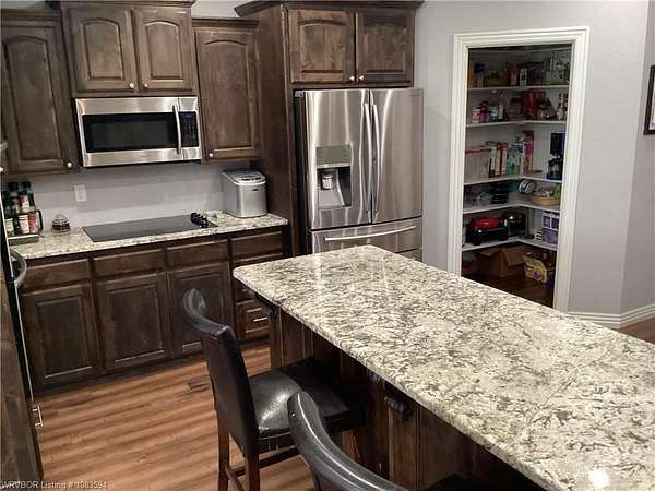 Custom Home on 24 acres with Steel Barn & Guest Quarters-Built 2017, New Roof 2024. This 2967 sq. ft. all-electric ranch home combines modern comfort with country living. Move in ready and designed for lasting peace of mind. Inside the open floor plan features hardwood floors, crown molding, and a spacious living room with a stone fireplace. The gourmet kitchen offers granite countertops, stainless steel appliances, double ovens, walk-in pantry, and a large island with seating- perfect for entertaining. The primary suite includes patio access, a spa-like bath with soaking tub, separate shower, dual vanities and oversized closet. Additional bedrooms with walk-in closets and a flexible bonus room office or hobbies. Bathrooms are finished with granite counters and updated fixtures. Outdoors, enjoy sweeping views from the covered patio or take advantage of the 80x60 steel barn with complete living space-featuring its own central A/C, kitchen, bathroom, and finished quarters. Currently used as a tack room, it's fully functional for guests or multi-generational living. Fenced pastures & wide open acreage make this property ideal for horses, cattle, or simply enjoying the privacy of country life.