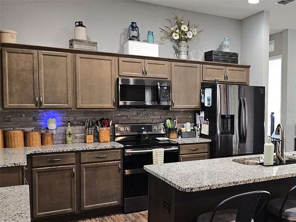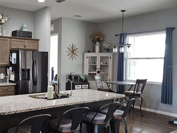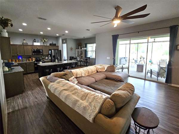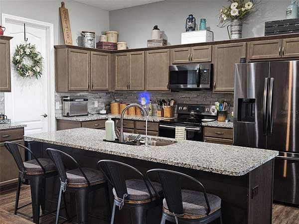 4 Bedroom 3 Bath home situated on nearly 3 acres of country living only minutes away from I-4 (Tampa/Orlando). Built in 2020 this home features 10’ ceilings, an open concept living area, and a cozy Den with a barn door for added character. The Kitchen boasts granite counter tops, Samsung appliances, a walk-in pantry with lots of storage and a large island bar for ample seating. The 3 way split floor plan includes ensuite baths with granite counter tops in the Primary Bedroom and Bedroom 3, walk in closets, a large screened Patio with hot tub, an oversized 3 car Garage and a detached 18 x 20 Workshop. Plenty of guest parking with a long driveway. As an added bonus, this home features a newer 49-panel solar system(2024) with three backup batteries for comfortable, worry free living during a power outage. So many great features, call to make an appointment today!