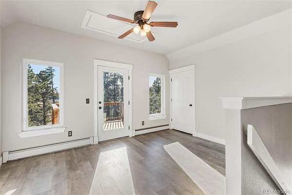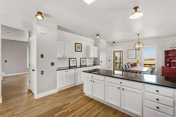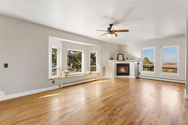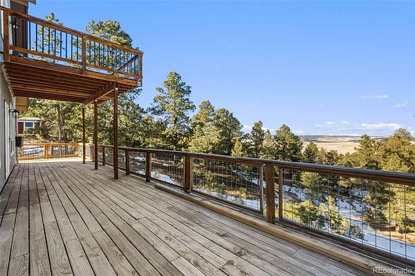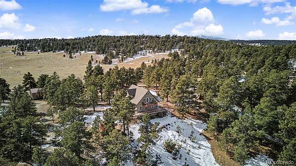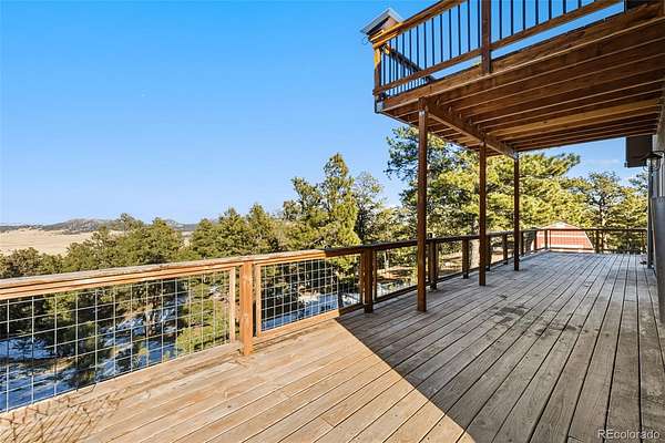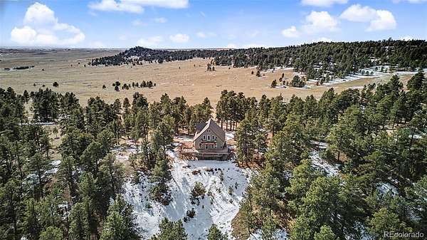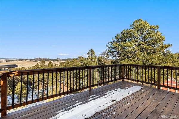 Discover serene living on this 10.8-acre property, blending seclusion with convenience. Surrounded by abundant pine trees, it boasts incredible panoramic views of the Bijou Basin, spectacular sunrises/sunsets, and frequent wildlife like elk, deer, and turkeys. Inside, warm hardwood floors grace the main areas. The beautiful kitchen shines with open layout, ample counters, and natural light—ideal for gatherings. A cozy gas fireplace warms the spacious living room, featuring a charming window seat for enjoying those endless vistas from the main level. The master bedroom offers a truly exceptional view, creating a peaceful retreat with inspiring scenery right from your private space. Multiple wrap-around decks (upper and lower) extend outdoor living for coffee, barbecues, or relaxation in nature. Hobbyists appreciate the large detached shop building, climate-controlled detached garage, and handy storage shed. Fully fenced, the land mixes treed privacy with open sunny spaces. This homestead or sanctuary, minutes from Peyton and Colorado Springs, delivers views, wildlife, space, and true Colorado serenity. Schedule your showing today!
