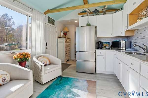 Welcome to this One-of-a-Kind Riverfront Retreat on the Chickahominy River! This custom-built Craftsman-style home sits on 5 serene acres with breathtaking river views and offers the perfect blend of luxury, comfort, and privacy. A stately covered front porch welcomes you into the vaulted foyer showcasing gleaming hardwood floors, elegant fixtures and grand windows framing the stunning natural surround that continues throughout the home. The formal dining room with a modern tray ceiling opens to the great room, creating a seamless flow ideal for entertaining. The great room features a beamed vaulted ceiling, floor-to-ceiling windows, a fireplace with porcelain tile surround and flanking built-ins, and access to the rear paved patio with a vaulted awning, perfect for relaxing and taking in the views. The kitchen is bright and beautifully appointed with stainless steel appliances, custom cabinetry with lighting, and a center island table. A private study just off the great room includes a full wall of bookcases, large windows with river views, and a private bath. The luxurious primary suite is a true retreat with a dressing room, water closet, and a spa-like bathroom featuring dual vanities, abundant cabinetry, dual rainfall shower, and a jetted soaking tub. A hallway off the kitchen leads to the laundry room, a second bedroom, a full bath and a staircase to the lower level with a sitting room, full bathroom and access to the attached oversized two-car garage and additional large unfinished rooms. Completing this exceptional property is a separate 288 sq/ft Owners Writing Cottage(including the home total sq/ft comes to 2,728) featuring a kitchenette, one bedroom, full bath, and a covered porch-perfect for guests or multi-generational living. Located minutes from Rivers Rest & Blue Heron Restaurant this home offers a peaceful escape surrounded by nature. Whether you're seeking a weekend getaway or a full-time riverfront residence, this property delivers the privacy, beauty, and lifestyle you've been dreaming of.
