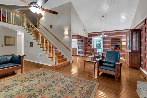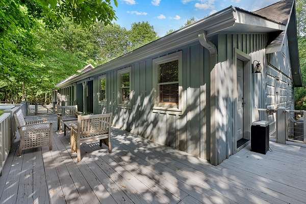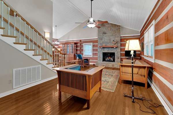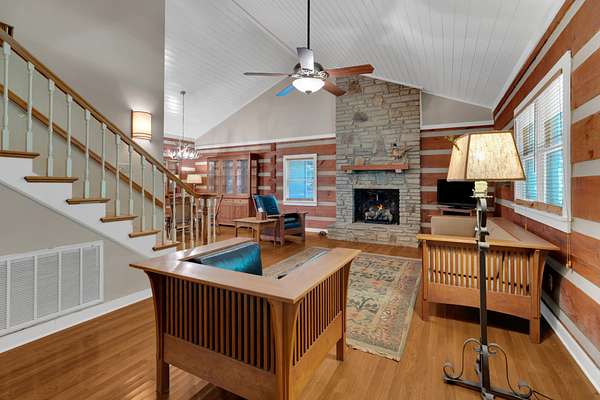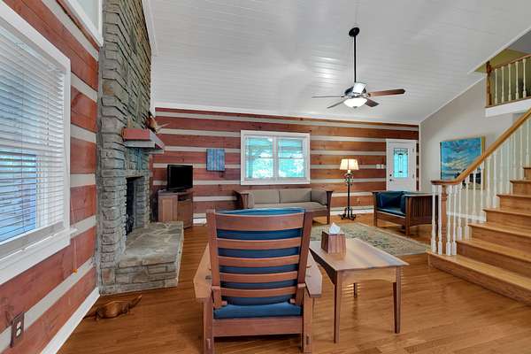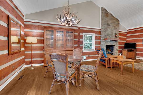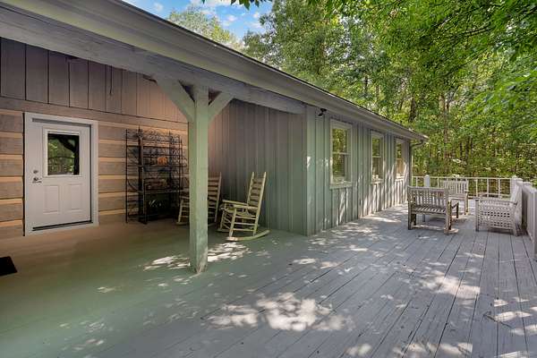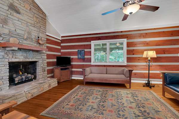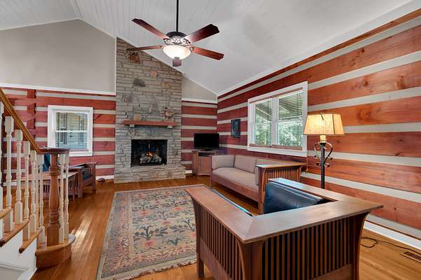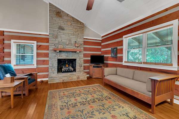 This charming 3-bedroom, 3-bath log cabin sits on a 5 acre beautifully maintained wooded lot in the coveted Clifftops neighborhood. Featuring gorgeous hardwood floors, abundant storage, and a dedicated office with built ins, this home blends rustic character with modern comfort.