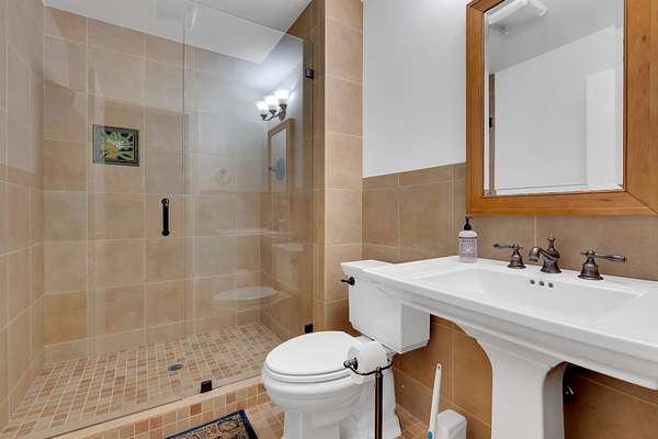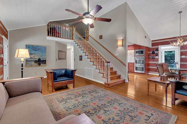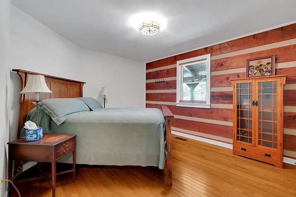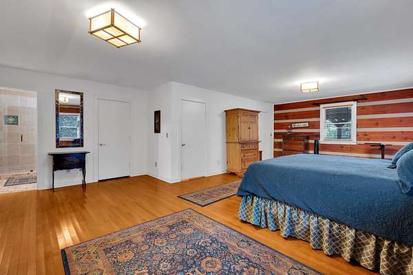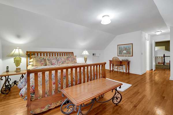 The spacious master suite offers a relaxing retreat, while the large upstairs bedroom includes its own private bath, perfect for guests or family. A third bedroom provides additional flexibility for sleeping or office space.