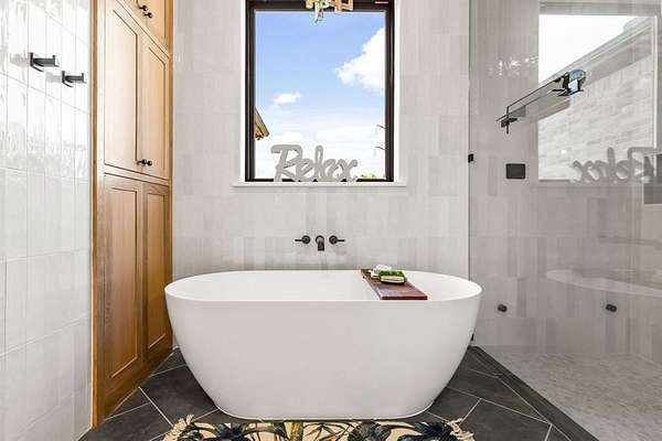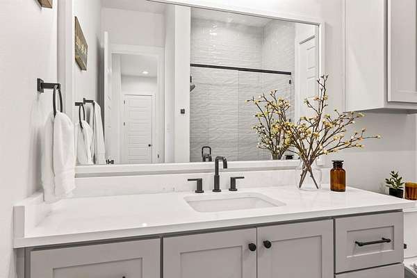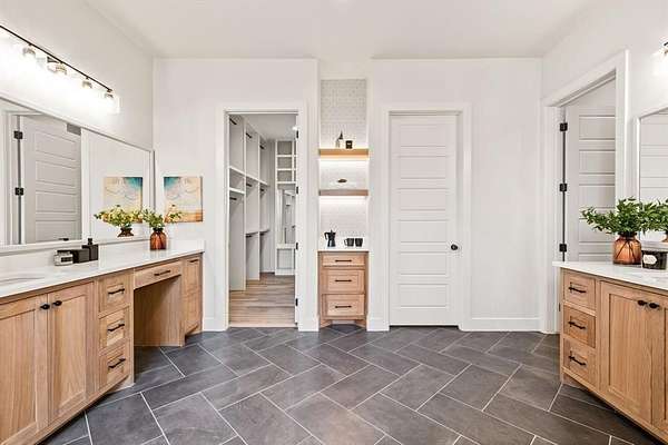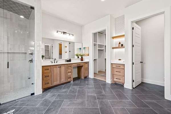The primary suite offers over 300sf of retreat space with dual custom closets, spa bath with freestanding soaking tub, steam shower with rain head and multiple sprayers, plus a private coffee bar with water line for mornings in peace. A guest suite with large closet and walk-in shower sits on the same wing, while two additional ensuite bedrooms and a playroom complete the opposite side of the home, creating comfort and flexibility for kids, guests, or multigenerational living. Every space is crafted for you with premium finishes and thoughtful design!