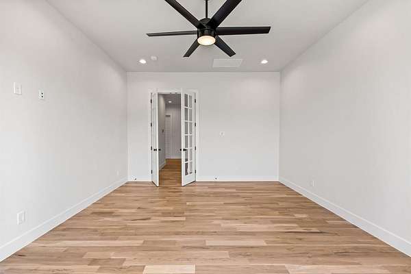Preferred lender 5% interest rate available! Tucked at the end of a quiet cul-de-sac on over 2 acres, this 4,266 sq. ft. Fourlight Custom Home combines privacy, sweeping ranchland views, and a thoughtful floor plan built for everyday life and entertaining - all packed into a luxurious Modern Hill Country palette. A long driveway with cul-de-sac turnaround makes guest arrivals effortless, while the exterior's Hardi trim, upgraded brick and stone, and cedar porch ceilings create timeless curb appeal. Through wrought Iron Haus French doors, you're welcomed into a grand foyer with soaring 12' ceilings. Ahead, the frameless-glass study with ceiling beams and built-in bookshelves doubles as a stunning retreat or home office. The great room opens with floor-to-ceiling windows framing the landscape and a 4-panel 8' Andersen slider that disappears to the covered porch--ideal for sunsets, hosting friends, or watching kids play.