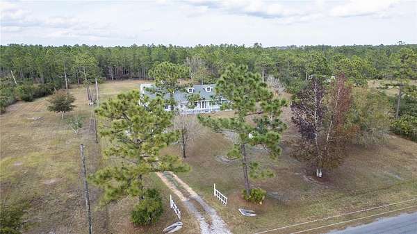 Located in the desirable Rocket City community in Wedgefield, this spacious 4-bedroom, 2-bath 1-story, single-family home set on a beautiful estate lot totaling nearly 6 acres, comprised of three (3) parcels. The main homesite includes 2.93 acres and is being sold with two additional parcels: 25-23-32-9632-00-230 (1.22 acres) and 25-23-32-9632-00-263 (1.71 acres) with two parcels vacant, offering exceptional flexibility for future use or investment. Horses are allowed, making this an ideal property for those seeking a true country lifestyle with room to roam. A beautiful wrap-around porch welcomes you home and provides the perfect place to relax and enjoy the peaceful surroundings. Inside, the home offers a split floor plan, formal living and dining rooms, and wood laminate flooring throughout, with one bedroom perfectly suited as a home office or flex space. Recent improvements include a new roof (2017), new A/C (2019), hurricane shutters (2019), septic system cleaned in 2022, and a new water heater (2025). The property also features a storage building on the main parcel and a dry pond, enhancing functionality and drainage.