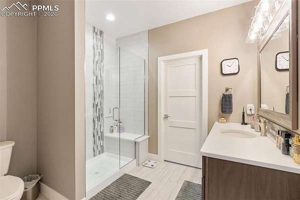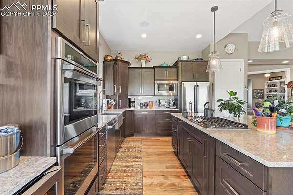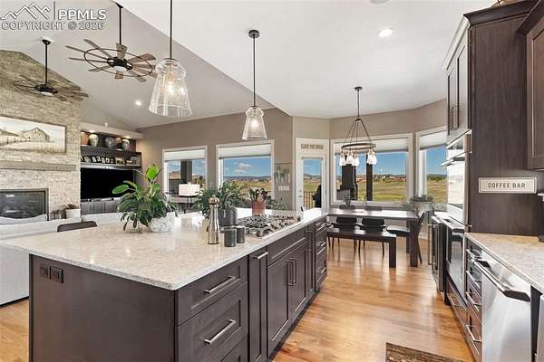 You will love to live in this custom, incredible, awesome & fabulous home. Even if you don't golf you can watch & be entertained as you're right at hole 13. Great location for commuting. Views to never get tired of. Open floor plan on both levels is meant for family & entertaining. The kitchen of your dreams with beautiful maple cabinets, high end GE Cafe refrigerator, double ovens, microwave, gas cooktop, beverage center with a wine cooler & beautiful quartz counters. Separate dining room for more seating. Spacious office with built in cabinets, counter, bookshelves & window seat. Easy to care for & gorgeous real wood floor on the main. Guest bedroom with a bathroom on the main. Master suite you may not want to leave, spacious bath with separate sink/cabinet areas, soaking tub, large shower with dual heads, fireplace for the chilly nights, large walk in closet & spacious bedroom, beautiful tile & quartz counters. Large covered 25x15 deck with room for 2 sitting areas & access from kitchen & master suite. Carpet in the bedrooms & the basement. Basement boasts a large family room with another fireplace, room for games, TV area, wet bar with plenty of cabinets, built in wine rack, under counter frig, room for a microwave. 2nd laundry area & a large linen closet. 1 bedroom & bath, plus another master suite with a sitting room, a bonus work out room with a rubber floor is 19x12. All baths have lovely maple cabinets, quartz counters & beautiful tile. But the storage may be the best - 1 storage room with built in 24" deep shelves that is 12x12 & another is 11x10 that is 6 sided concrete with a fire proof door for your valuables, wine or collectables. Covered concrete patio below the spacious deck above. Plenty of room for tools, appliances, yard equipment, vehicles & toys in the 27 x 44 garage that is even with the main level. Walk into the large laundry with plenty of cabinets, counter above the washer/dryer & a large sink. Seeing this home is better than the pictures.