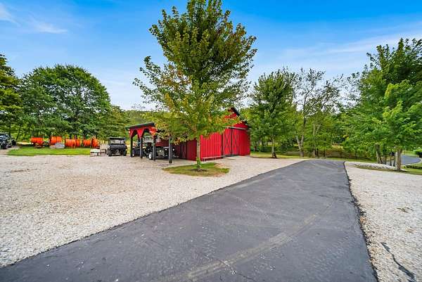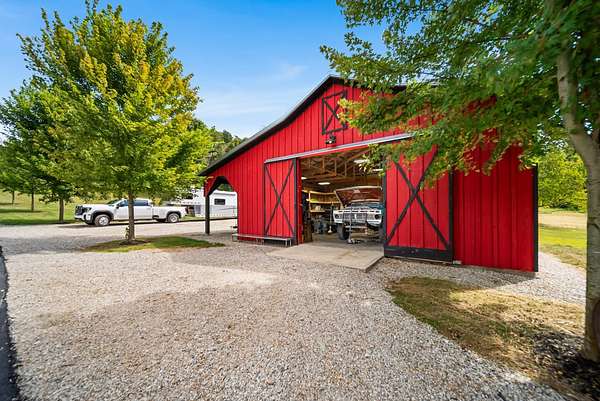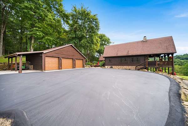 Additional improvements include a three-car insulated garage near the home, a newly built barn with space for six stalls and extra trusses for strength and storage, plus another detached garage/workshop off the driveway. A nearly 1,000-foot asphalt drive ties it all together, leading you to this one-of-a-kind Hocking Hills retreat.