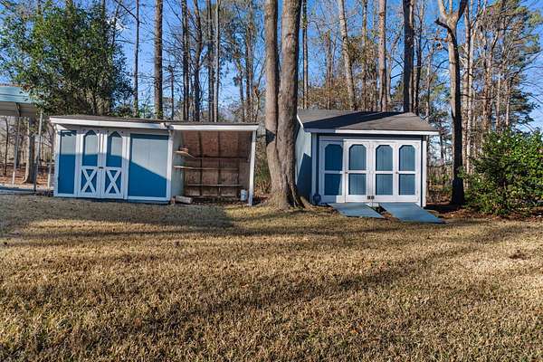 Peaceful Pond-Front Living in Orangeburg, South Carolina! Enjoy tranquil pond views from this 3-bedroom, 2-bath home nestled on a 1.81 acre lot in the Hickory Hill neighborhood. The property offers outdoor features perfect for relaxation and recreation, including a private dock, rear deck overlooking the backyard with view of the water, and multiple storage buildings for tools, hobbies, or extra space. A carport provides convenient covered parking. Inside, the home features a cozy gas fireplace, creating a warm focal point for the living area and an eat-in kitchen. With a functional layout and scenic surroundings, this property offers excellent potential for buyers looking to personalize a home in a desirable waterfront location. The seller recognizes the home needs some updates and will be selling it AS-IS.