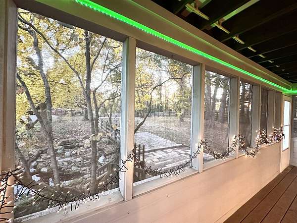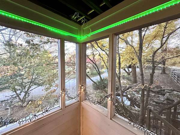- Backyard Fence, Brick Walks, Covered Front Porch, Covered Patio, Enclosed Patio, Enclosed Porch, Fence, Fenced Yard, Gas Grill, Landscaping, Mature Trees, Plank Fence, Pond(s), Screened Porch, Storage Building, Storage Shed, Trees