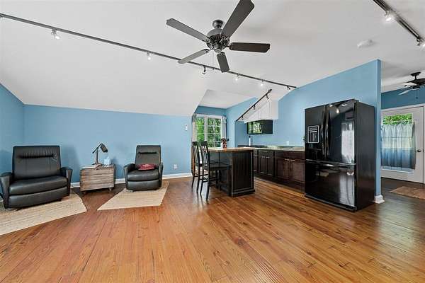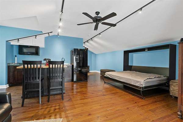 - Bookshelves, Ceiling Fan(s), Closet Light(s), Walk-In Closet(s), Wet Bar