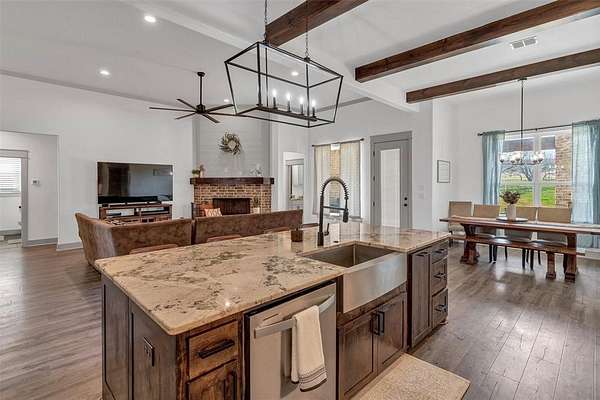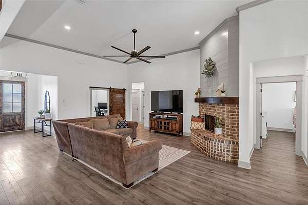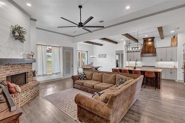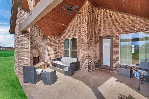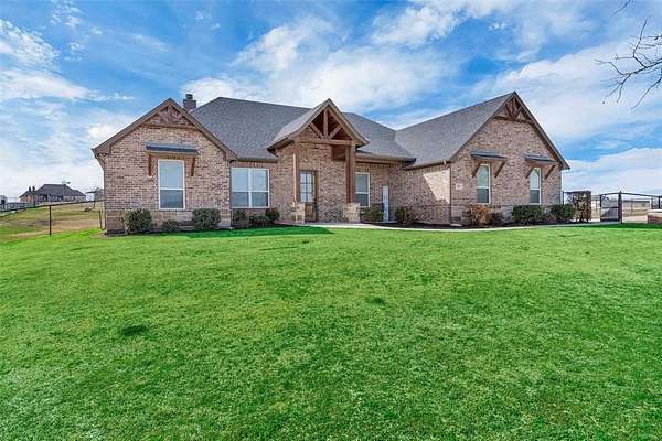 Located in the desirable Pioneer Crossing subdivision in Weatherford, this beautifully built 2021 home offers modern comfort on a spacious 2-acre lot. With 4 bedrooms, 3 full baths, and over 2,500 square feet, the layout provides both functionality and room to breathe. The open living design is ideal for everyday living and entertaining, while the split-bedroom arrangement gives the primary suite added privacy. The primary bath features dual sinks, a walk-in closet, and a separate shower. Ceiling fans throughout enhance comfort. The home also boasts many upgrades, including spray foam insulation for energy efficiency and year-round comfort, 250 gallon buried propane tank for filling twice a year, and gas tankless water heaters. Bring your vehicles, hobbies, or toys—this property includes an attached 3-car garage. Plenty of space outdoors to enjoy the wide-open Texas sky, add a shop, or simply relax and watch the sunset. No HOA and horses are permitted.