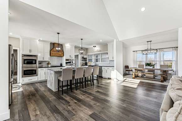 Step into the heart of the home, where an open floor plan seamlessly connects the living, dining, and kitchen areas. The kitchen boasts sleek countertops, premium appliances, and an oversized pantry for all your storage needs. Natural light pours through large windows, highlighting the meticulous craftsmanship and high-end finishes throughout.