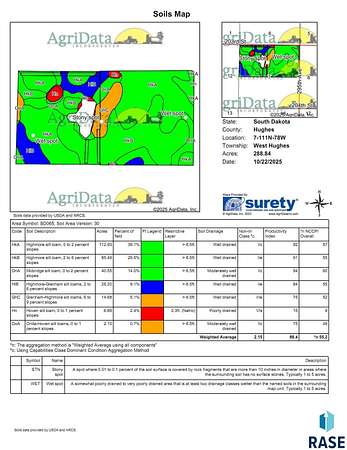 Just minutes from Pierre, this exceptional 302+/- acre property combines premium farm ground with outstanding hunting habitat, a truly rare find in central South Dakota. Featuring 269 acres of highly productive, well-drained cropland, the farm boasts a Productivity Index of 88.4%, with the majority of soil comprised of Highmore Silt Loam and a gentle slope of less than 2%, ideal for efficient farming and top-tier yields. Beyond its agricultural strength, this land is a sportsman's dream. Multiple mature tree belts, 11 acres of slough bottom, and a large pond fed by a flowing artesian well create prime habitat for deer, pheasant, and dove. A balanced mix of native cover provides year-round shelter, while established crops double as natural food plots. Whether you're looking to farm, hunt, or build your dream retreat, this property delivers unmatched versatility; with up to 8 building eligibilities, perfect for a private lodge, family getaway, or future development. Don't miss your chance to invest in land that works for you, season after season. Properties of this caliber are few and far between.