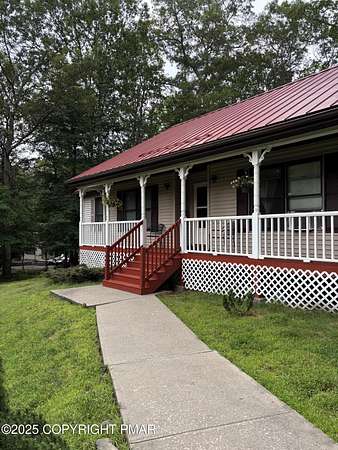 Est $2,107/moBUY NOW PRICE $349,900!! MOVE-IN READY! 2.35 ACRE 3 BED/2BA PERFECT POCONO HOME WITH ROOM TO EXPAND LIVING SPACE TO 2700 SF! EIK KITCHEN REMODELED, NEW BEAUTIFUL H/W FLOORING THROUGHOUT. COZY UP TO THE GORGEOUS FIREPLACE ON THOSE COOLER WINTER NIGHTS!! NEW DECK & BEAUTIFUL COVERED PORCH FRESHLY PAINTED. SIP TEA OR LEMONADE FROM THE AWESOME COVERED PORCH AS SEASONS CHANGE OR CATCH SOME RAYS NOW FROM THE DECK OR PATIO. FAMILY FRIENDLY KITCHEN, DINING AND LIVING ROOM. HERE IS WHERE TO ENJOY THE BEAUTY, PEACE AND SERENITY OF POCONO LIVING!! JUST MINUTES TO CASINO, SKIING, WATERPARKS, SHOPPING AND I80!