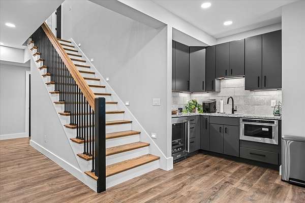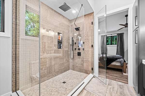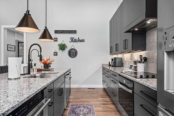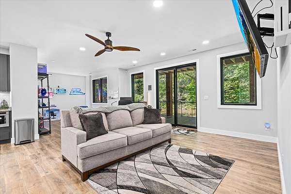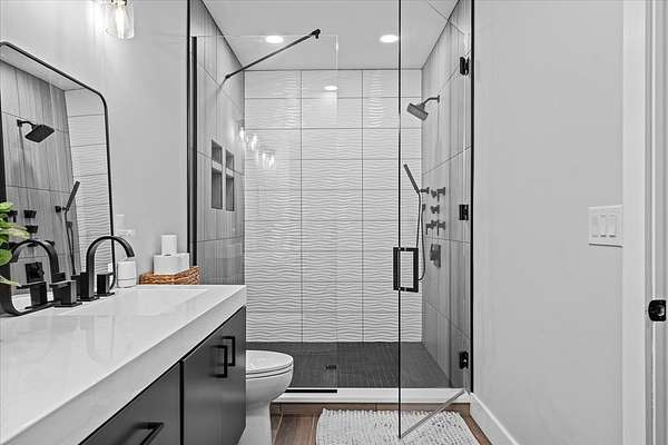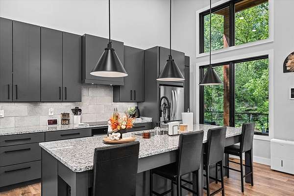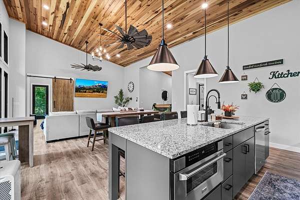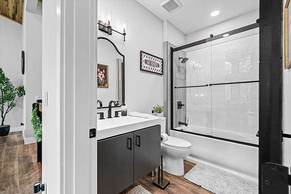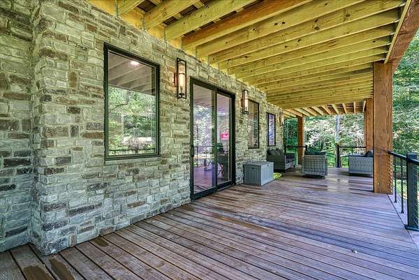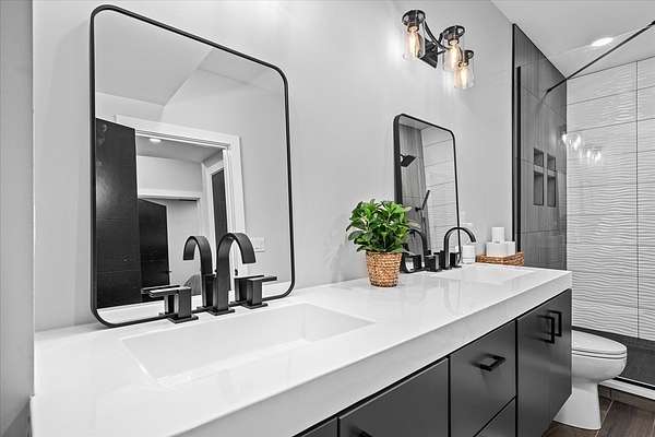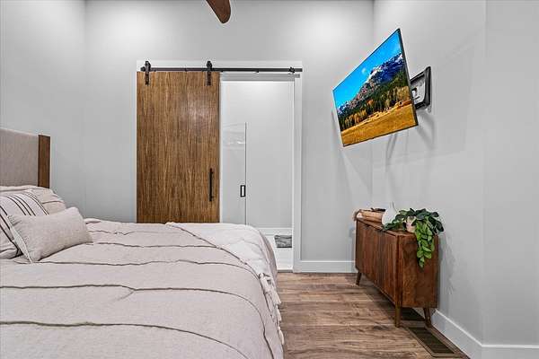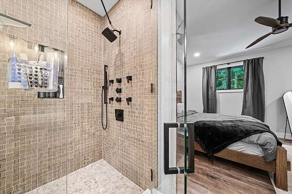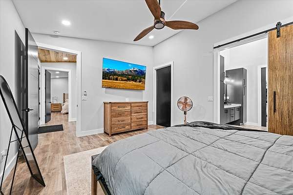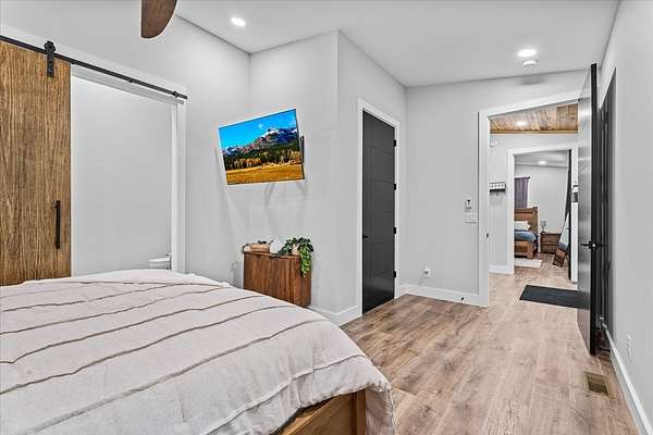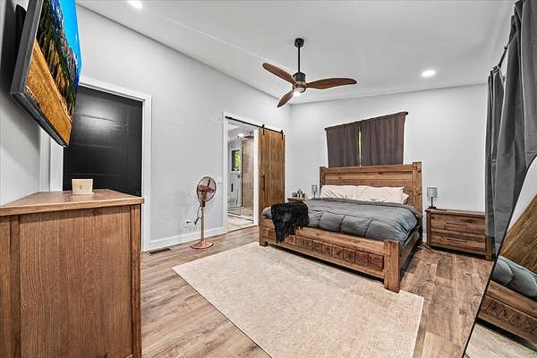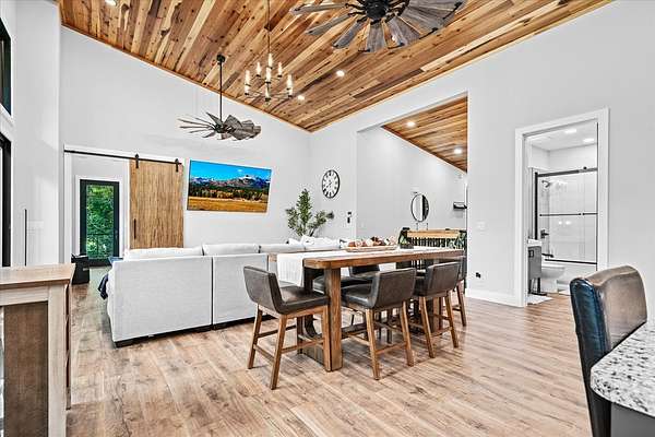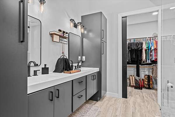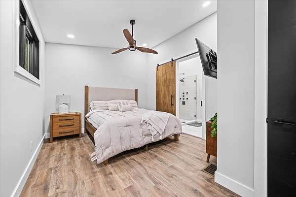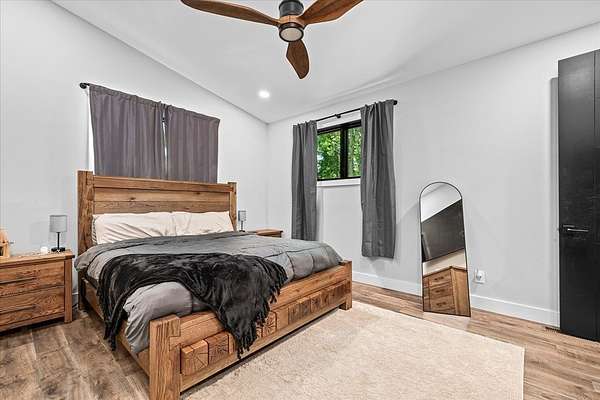 Welcome to this 2025 built home offering modern elegance and upscale living with rare Wolf River frontage. Designed with comfort and style in mind, the open floor plan seamlessly connects the kitchen, dining, and living areas. The main floor features two luxurious primary suites, a guest full bath, and a laundry room. From the great room, step out onto the covered porch with its cozy outdoor gas fireplace, ideal for year-round enjoyment. The lower level expands your living space with two additional bedrooms (one w/o window), a full bath, wet bar, and spacious family room with flex space, ideal for office. Walk out to the expansive covered deck and soak in the hot tub while taking in the beautiful riverfront setting. Elegant finishes and a thoughtful layout make this riverfront retreat truly one of a kind! The property offers covered parking at main level and 2 sheds for lawn equipment or tools, sizes 8x22 and 16x30. Property is unrestricted. You don't want to miss this one!