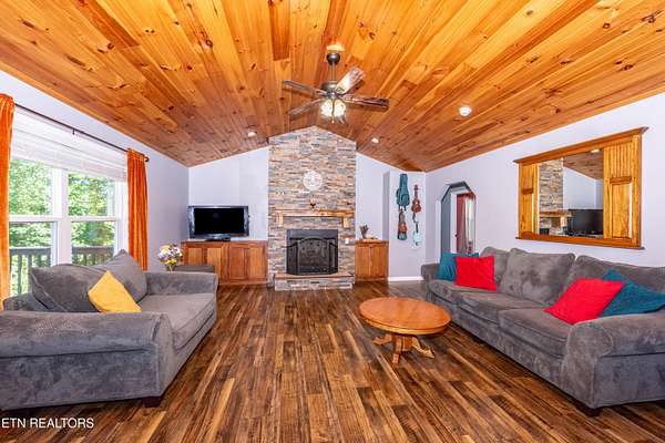 Discover your secluded mountain sanctuary! This private 20+ acre property boasts breathtaking mountain vistas, offering a true escape. Imagine enjoying your morning coffee on the front porch swing, surrounded by visiting wildlife like turkeys, deer, and colorful birds. The convenience of fresh fruit from your own trees to the natural charm. This custom built home ids designed for comfortable living, featuring vaulted tongue and groove ceilings, a cozy gas fire place, 3 bedrooms, 2.5 bathrooms, and a spacious bonus room. Step onto the back deck to soaking the mountain scenery and gentle breeze. Situated just 25 minutes from Oak Ridge and 45 minutes from Knoxville, you'll experience both serene seclusion and convenient access to amenities. Outdoor enthusiasts will delight in the proximity to Frozen Head State Park and other nearby recreational areas.