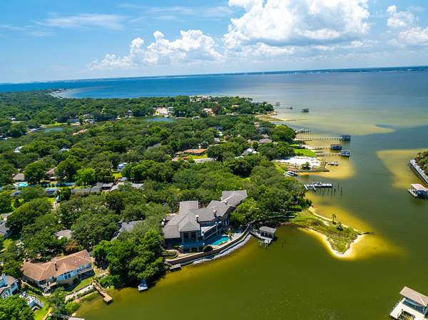 The Emerald Coast's Most Irreplaceable Waterfront Estate Opportunity. A true once-in-a-generation offering, 204 Laura Lane presents nearly 2 private acres and an extraordinary 675 feet of protected shoreline. A magnitude of waterfrontage rarely available and impossible to replicate. This bayfront compound provides the ultimate canvas with 14,203 square feet ready for re-imagination or restoration. Positioned for unrestricted western sunset views, the property captures sweeping panoramas across the bay and delivers unparalleled privacy, scale, and possibility. With deep-water access designed for large yachts and a 5-10 minute run to the pass into the Gulf of Mexico, the boating lifestyle here is effortless. More water. More land. More legacy.