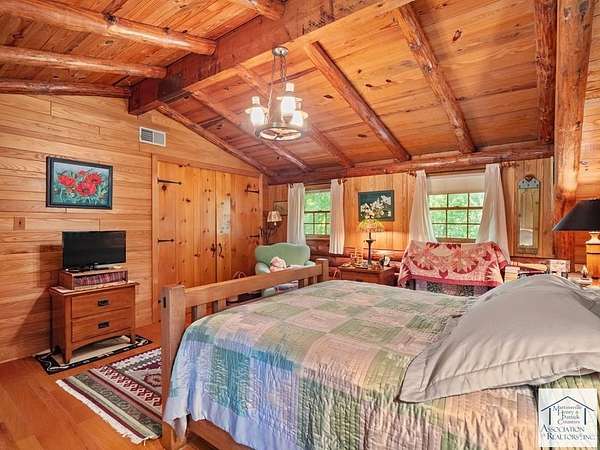 Welcome to your own private Oasis nestled in beautiful Patrick County, VA. This secluded cabin on 5 acres, offers the perfect retreat whether you're looking for a weekend getaway, Airbnb or a primary residence. With a bedroom and full bath on all three levels, this home provides ample space and privacy. The cedar lined closets and hardwood floors add a touch of warmth and charm to the interior, while the cathedral ceilings create a sense of spaciousness. Enjoy the peace and tranquility of the outdoors from the seating area below or two covered porches one with ceiling fans, perfect for relaxing on warm summer evenings. This cabin is equipped with solar panels and a water stove, that can easily be re-connected, providing eco-friendly and efficient energy solutions. The screened in gazebo with electricity awaits outdoor lights for the perfect ambience, relaxing in the evening or late at night. Additional features include security system, open loft area overlooking the living room, *new roof* a shop with electricity, propane heat, and AC unit. The mother-in-law's suite in the basement offers a separate living space for guests or extended family. Stay cozy in the winter months with the wood stove in the basement or the beautiful rock fireplace upstairs. This property includes a creek, circle drive, recently pumped septic system and we can't forget about the "secret room" hidden in the basement. Property being sold "as is." All info. per seller/tax card and buyer to verify.