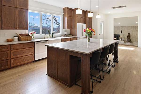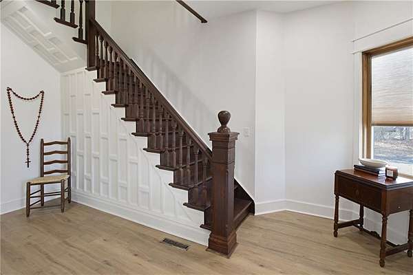 Step into timeless elegance with this circa-1900 historic home, thoughtfully stripped down and completely remodeled from the studs up, where historic charm meets modern luxury. The heart of the home is the massive, light-filled but cozy kitchen, designed for both everyday living and entertaining, featuring quartzite countertops, extensive custom cabinetry with abundant storage, all new appliances including a 48" dual fuel range, and seamless flow into the living spaces. Just beyond the kitchen, a cozy sunken family room with fireplace invites you to relax and unwind, creating a warm, intimate setting that contrasts beautifully with the home's open feel. A separate formal dining room is perfect for hosting gatherings, while the original staircase stands as a striking architectural centerpiece, honoring the home's historic roots. The home offers 4 bedrooms and 2.5 beautifully updated baths, all thoughtfully designed with style and function in mind. Everything in this home is new, from the waterproof laminate flooring, pella windows w/ built in blinds, new roof on the house and shop, smart siding, breaker box w/ all new wiring, plumbing including repaired main drain line and new clean outs installed, fixtures, drywall and spray foam insulation on roof and HVAC. Outside, this property is truly exceptional. Located inside city limits on a paved road, the home sits on 4.14 acres, offering rare and sought after space. A large 60' x 25' 2 story shop provides two parking spaces plus additional room for a boat, RV, or workshop, ideal for hobbies, storage, or business needs. This is a rare opportunity to own a fully modernized historic home with acreage, a show-stopping kitchen, and unmatched versatility-all within city limits.