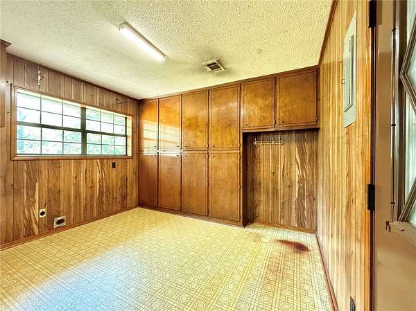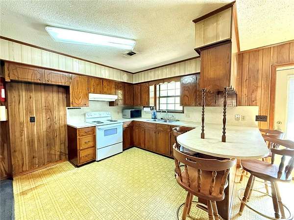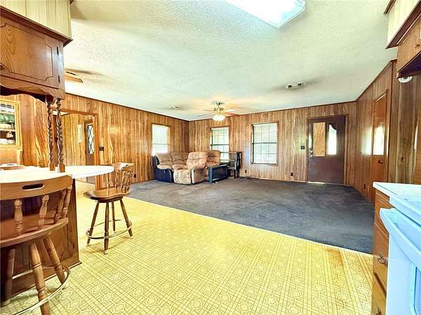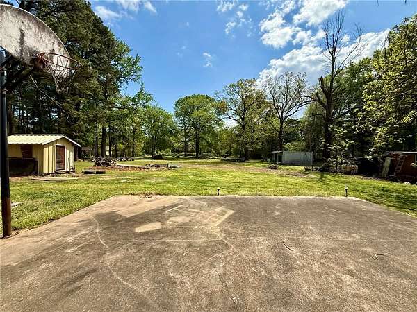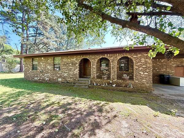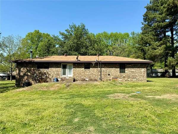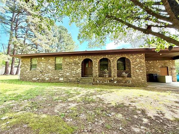 Charming 3-bedroom, 1.5-bath brick home on 1.8 acres in Atkins city limits! Offering 1,324 sq ft, this home features an open-concept living, dining, and kitchen area, central HVAC, carpet flooring, and a functional layout with the primary bedroom including a private half bath. Enjoy the convenience of an attached carport with direct access to the laundry room. Step outside to a back patio overlooking the huge backyard, complete with outbuildings and plenty of space for gardening, outdoor living, or creating your own private oasis. Connected to city water and sewer, with trash included in water service, this property is a blank slate ready for your personal touch and updates!