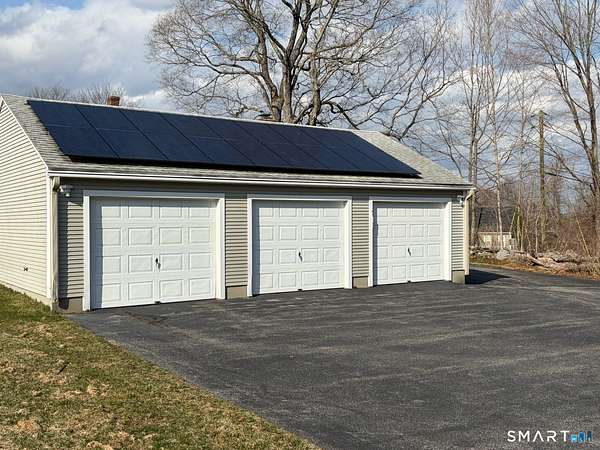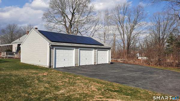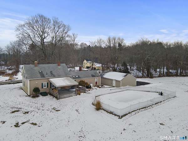First time offered in over 50 years, this c.1820 home has been updated and very well maintained with craftsmanship and charm. Rich and warm with wood and natural light, comfortable kitchen, large dining room, and a wood burning fireplace in the living room. The original Cape portion of the house has 3 rooms and a half bath on the 2nd level. The primary bedroom is on the main floor. With over 2200sqft, there is plenty of room to spread out. There is an attached workshop for convenience. From the kitchen, step onto the covered composite deck and watch the wildlife, enjoy the tranquility of the area, or entertain a large group. The property is a total of 16.9 acres, with 6 mostly open acres in Pomfret, and 10.9 lightly wooded acres in Eastford. Other amenities include solar panels, a whole house generator, inground pool, paved drive, and a 3 car detached garage. Current combined real estate taxes for both town is $5866. Both lots are on the same deed. Seller must secure suitable housing.