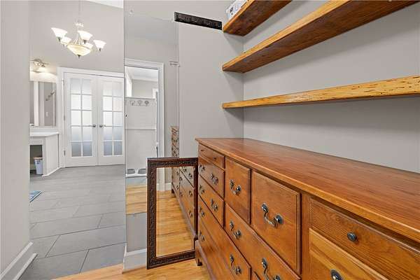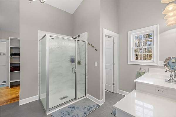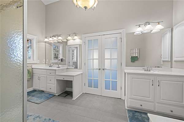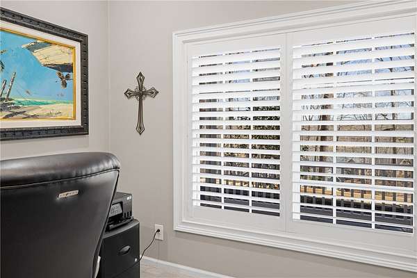 - Bath In Primary Bedroom, Bathtub, Bookcases, Built In Features, Cathedral Ceilings, Ceiling Fans, Dual Sinks, Fireplace, High Ceilings, Main Level Primary, Permanent Attic Stairs, Quartz Counters, Separate Shower, Smooth Ceilings, Solid Surface Counters, Walk In Closets, Walk In Shower, Window Treatments