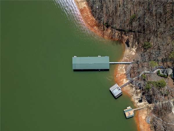 SPORTSMEN'S DREAM! Fishing...Boating...Hunting! Don't miss this rare opportunity to own over 10 acres, a 3 bedroom/2.5 bath home with treehouse views of Lake Hartwell, TWO (2) deeded, unassigned boat slips, AND a 36 x 40 meticulously built outbuilding. Located in the sought after lake front community of Riverlake Subdivision, this home provides main level living featuring 2 car garage, open kitchen/living/dining area, primary bedroom ensuite and laundry. Ascending the concrete drive, the double wrap around porch offers seasonal treehouse views of Lake Hartwell. Upon entering the home an open concept plan filled with an abundance of natural light offers ideal entertaining space. The living area offers water views while enjoying the warmth of a fire. The kitchen cabinetry was replaced in 2022 providing an abundance of storage. The kitchen area also contains additional storage via the walk-through pantry leading to the unique laundry room with a raw edge wood countertop and wet sink. The primary bedroom completes the first level also with views of the lake. French doors lead you into the bath with double vanities, toilet closet, tub, and walk-in shower. Continue through to the walk-in closet which wraps through to the laundry room. The lower floor consists of four rooms with a full bath and accommodates a flexible arrangement for use as secondary family room, bedrooms, office space, exercise rooms, etc. Windows and door open to a covered patio with seasonal views of the lake even from the lower level. Enjoy the view of the lake from the upper firepit along the gravel path leading to the meticulously built and maintained 36 x 40 outbuilding. Open space accommodates a multitude of uses (used as a wood shop by a previous owner). Permanent stairs lead to additional attic space. A secondary water source - well- has been tapped to the exterior of the outbuilding. This area is gated but allows for leveled access from a secondary entrance. The area around the outbuilding has been graveled for parking of RV's and boat trailers and power provided for RV hookup. Adjacent to the outbuilding is an additional 8 plus acres for hunting within SC Department of Natural Resources guidelines and ensures utmost privacy. This package includes 2 deeded, but not assigned, boat slips located at the community dock a short distance away. This secured access includes a private parking area to more easily access your boat. Currently these slips are side-by-side at the end of the dock with the deepest water access. The property is located within 5 minutes to I-85 offering convenience to Greenville and Atlanta. Don't miss this opportunity! Call to schedule a showing today!