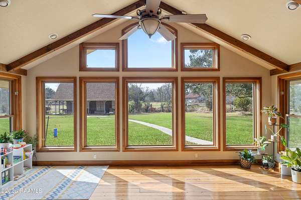 This is what you've been searching for! A beautifully updated 4B/2.5B home on 4.5 ACRES of land in the beautiful Coteau Ridge area with a whole house generator, wet bar, floor to ceiling windows, vaulted ceiling, wood beams, wood burning living room fireplace AND a separate Acadian Style fully operable GUEST HOUSE, new green house, RV Storage with hook-ups, 40x60 metal shop with tack room, electricity, half bath, garage door and solar panels all within in Lafayette Parish and in flood zone X, surrounded by beautiful mature oak, pecan and fruit trees in the most serene setting. The whole house generator has an in-ground propane tank with underground cable to the well. Solar panels on the barn maximize the use of southern exposure and are cabled underground to the main house. The location is ideal - just out of the way enough to feel like a rural retreat yet within minutes of I-49/I-10. Newer roof, HVAC, kitchen appliances, custom cabinets and long driveway so you can host the next family gathering!