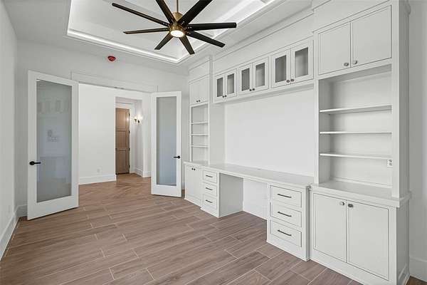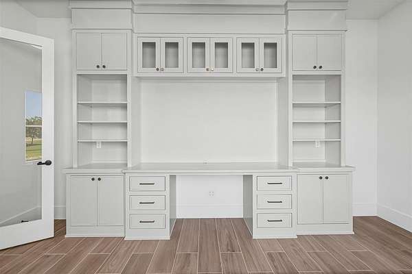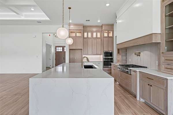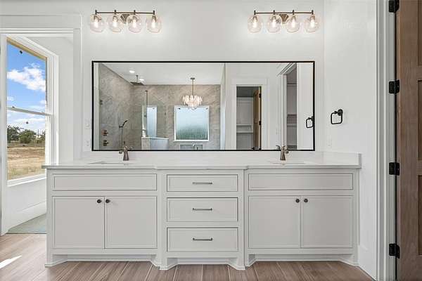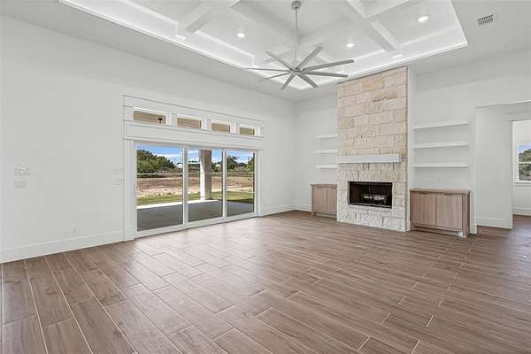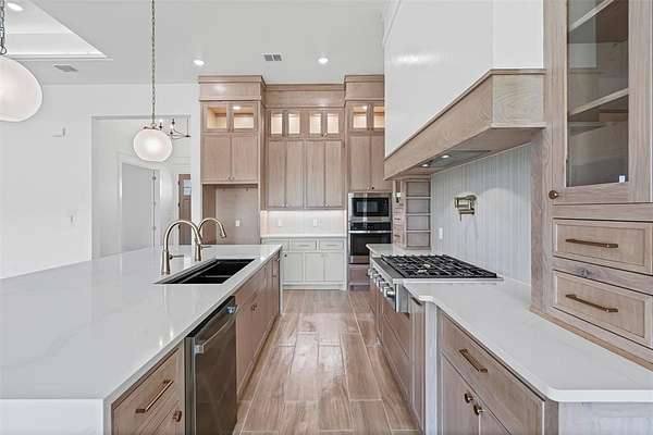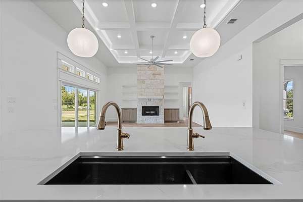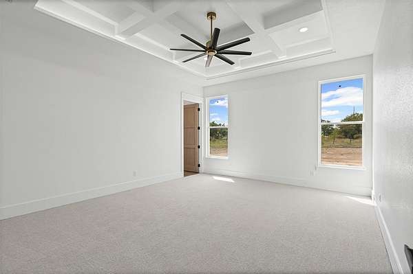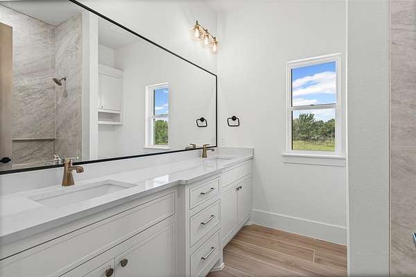New construction from Alameda Builders in desirable Weatherford! Step into an inviting living space anchored by a stunning professional designed cashmere kitchen. The soft, warm neutral cabinetry pairs seamlessly with white quartz countertops, providing a sophisticated backdrop for both quiet family dinners and lively entertainment. Brushed brass fixtures add a touch of understated elegance that like cashmere, itself, only gets better with time. The primary suite offers a tranquil retreat, boasting an en-suite bath with modern fixtures and a spacious walk-in closet. This home is full of upgrades featuring 8 ft solid core white oak interior doors, walk in pantry with custom cabinetry and granite countertops, full foam insulation for energy efficiency, double sliding doors leading to an oversized patio, epoxy garage floors. This development has no HOA and allows for a second guest home up to 2000 sq feet.