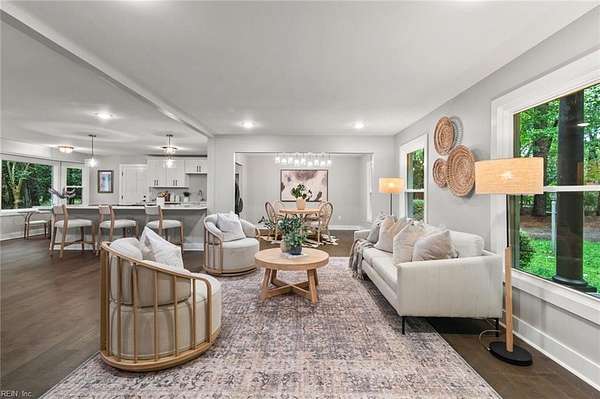 ATTENTION LAND LOVERS! Meticulously renovated ranch on over 2 private acres in Yorktown, offering endless possibilities. Add a guest house, barn, pool, or even create space for horses--BUILDERS, consider subdividing another lot! Modern open floor plan with luxurious LVP floors, fresh paint, and recessed lighting throughout. Stunning new kitchen with quartz countertops, stainless steel appliances, and custom cabinets. Primary suite features a gorgeous ensuite with upgraded tile. Additional updates include a roof less than 2 years old, brand new HVAC and ductwork, new water heater, and garage with epoxy flooring. Enjoy the enclosed porch overlooking your expansive property, perfect for year-round relaxation. Privately nestled yet convenient to shopping, dining, and top-rated schools--move-in ready and designed for today's lifestyle!