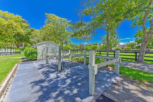 Winter Heaven Farm is opening the gates once again for the 2025/2026 WEF season for you to enjoy this fabulous property in the highly sought-after Saddle Trail Park of Wellington. 5 Stalls left in a private back barn with its own feed and storage rooms. In addition to being hacking distance to the WEF show grounds, features of this farm include a business friendly tack room with a kitchenette, laundry room/half bath, feed room, a covered horse gym treadmill, 3 wash bays, plentiful grooming areas, and four large grass paddocks. Tractor, drag, and full set of jumps are also included to properly maintain the 125'x200' irrigated arena. Do not miss out on this unique opportunity!!