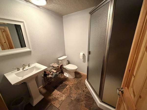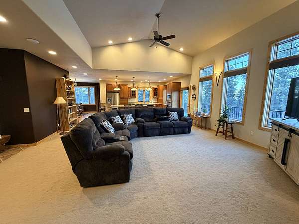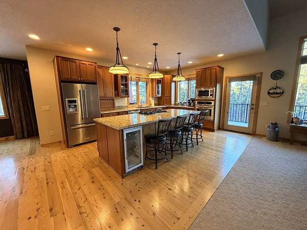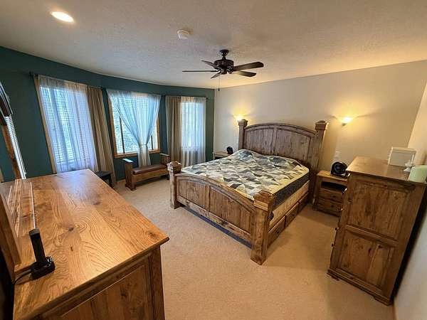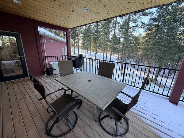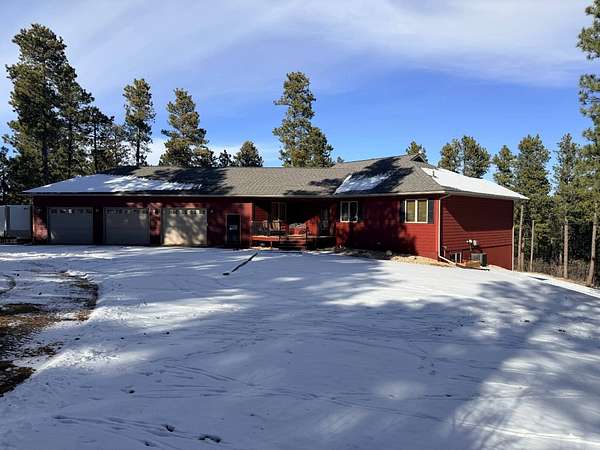 A calm and gorgeous property to call home. This property on 4.92 acres is in the Aspen Hills subdivision located within the Black Hills National Forest. Spacious master bed and bath on the main level. Master bedroom has its own door to the deck. Master bath has a large custom shower and a large built-in tub. A mudroom separates the dining room and half bath from the garage. The mudroom leads into the large laundry room with closet and built in ironing board. The kitchen features cherry wood cabinets, built-in appliances and granite countertops. Living room features a vaulted ceiling and rock surrounded gas fireplace. There are three bedrooms on the lower level plus and office and a room with gas fireplace and its own door to the exterior. Large deck that surrounds the dining room, kitchen and master bedroom. Propane plumbed to the deck. Starlink installed. Private (shared) well and septic system. Three stall garage w/heat and floor drain.