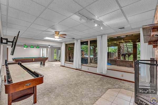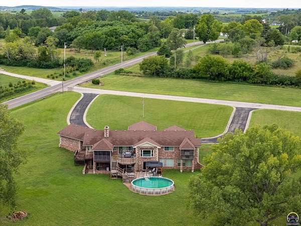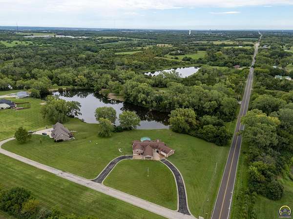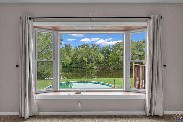 LARGE HOME, MANY ENSUITE BATHS, SHADY DECK, POOL, POND, and ACREAGE! THIS IS YOUR TICKET TO THE PEACEFUL LIFE! Step inside and you're immediately met with what makes this home unforgettable- a grand entrance with a picture window view straight to the pond. 2040 SW Cottonwood Ln blends space, comfort, and natural beauty across nearly 3 acres with a private, peaceful backdrop. No rear neighbors, just water, trees, and sky. The living and dining areas glow with natural light from a bay-style picture window. The kitchen is clean and classic, with white quartz countertops, subway tile backsplash, white cabinets, and LED lighting. A screened porch and back deck face east- ideal for sunny mornings and shaded evenings. Most bedrooms include walk-in closets, and the Jack & Jill bath adds smart functionality. The laundry room is conveniently located on the main floor. Downstairs, the walkout basement opens into a huge finished space with a bonus room- perfect for game nights, creative projects, or extra living area. Geothermal HVAC, added insulation, and newer carpet throughout keep things efficient and comfortable. With an above-ground pool, circle drive, extra covered parking, and just four minutes to I-70 on a paved road, this one truly offers it all- inside and out.