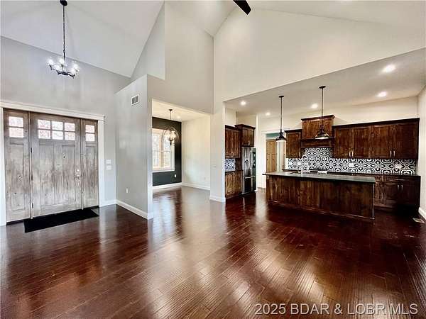 Exceptional opportunity on 6.9 pristine acres, this striking estate offers a rare blend of luxury, privacy, and design. Featuring 4 bedrooms, including 2 elegant primary suites on the main level & 2 guest bedrooms in the fully finished walk-out lower level, this home is crafted for both comfort & sophistication. The main living space showcases soaring ceilings, fireplace, & walls of natural light, opening to a covered deck ideal for entertaining or peaceful evenings overlooking the acreage.The gourmet kitchen is beautifully appointed with granite countertops, premium appliances, & a walk-in pantry complete with a wine refrigerator.1 main-level primary suite serves as a true retreat, direct deck access, a spa-inspired bathroom w/ soaking tub, walk-in shower, & an expansive walk-in closet. Main-level laundry adds everyday convenience w/out compromising luxury.The walk-out lower level expands the living space with 2nd family room, perfectly suited for a future wet bar or lounge area. Additional highlights include a guest bathroom with a walk-in shower, a versatile non-conforming room ideal for a office or gym,& storage throughout. Completing the property is an oversized 1 car garage.