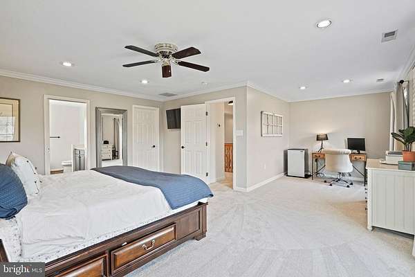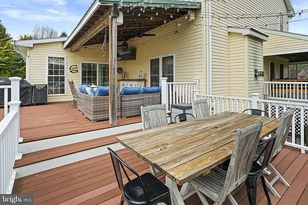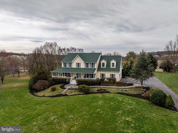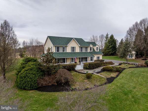 Beautiful farmhouse-style home set on 2.41 private acres with picturesque views and no HOA. A welcoming front porch offers the perfect place to relax and enjoy the peaceful surroundings, while the expansive backyard and deck provide ideal space for outdoor living and entertaining. The interior features a move-in ready, thoughtfully designed floor plan with a dedicated main level office, ideal for today's lifestyle. The kitchen opens seamlessly to the Family Room and a spacious eat-in area, creating a comfortable and functional gathering space. The kitchen includes a pantry, abundant counter space, and generous storage. Just off the kitchen, the mudroom offers exceptional convenience with a laundry center, powder room, garage access (2 car oversized), and built-ins for everyday organization. The upper level includes four bedrooms and three updated full bathrooms. The Primary Suite is a true retreat, offering additional space perfect for a sitting room, home office, or fitness area. It also features a custom walk-in closet with a storage system and a large en-suite bathroom complete with a soaking tub and walk-in shower. The finished lower level provides incredible flexibility with a bonus room suitable for a bedroom, recreation space, or game room, along with a full bathroom and multiple storage areas. Walk-up stairs provide direct access to the backyard. Additional highlights include a beautifully manicured lawn and a storage shed. This property offers space, comfort, and versatility in a serene setting, all without HOA restrictions.