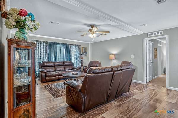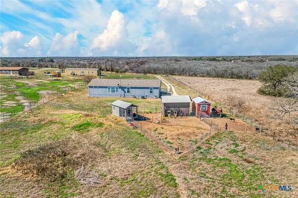 Well-maintained 3 bedroom, 2 bath manufactured home on 2 partially fenced acres with easy access to I-10 and a convenient 45-minute commute to South Austin. Located in Gonzales County, this country property offers a peaceful rural setting just minutes from town. The home features sheet-rocked walls, an open-concept layout, and a kitchen with center island, creating a bright and functional living space. Co-op water is in place and multiple outbuildings provide excellent storage, workshop space, or room for equipment, animals, or hobbies. The usable acreage allows space for gardening, RV parking, or small livestock while still being close to shopping, schools, and major highways. A great opportunity for buyers searching for affordable homes with land in South Central Texas, a rural home near Austin, or a small acreage property in Gonzales County.