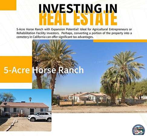 Terrific Investment Opportunity 5-Acre Horse Ranch with Expansion Potential! Ideal for Agricultural Entrepreneurs or Rehabilitation Facility Investors. Unlock the potential of this expansive 5-acre horse ranch with two homes and space for headquarters or facility development. Whether you're looking to expand farming operations or launch a wellness or detox retreat, this property offers the flexibility and scale to meet your vision. Live in one home while generating rental income from the second, larger residence. Ideal for housing staff, clients, or tenants. Ample land for animals, gardens, or additional structures. Currently, the 5-acre ranch generates a monthly gross income of $4,500 and incurs a $250 water expense every six months. Private and serene setting perfect for healing, retreat, or agricultural use. Perhaps, converting a portion of the property into a cemetery in California can offer significant tax advantages. First Come, First Served. The seller can finance and sell the property as is. Seller is highly motivated and ready to make a deal. Perfect for cash investors or 1031 exchange buyers. Don't Miss Out on this Rare Investment!