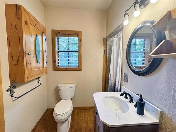 3 PLUS ACRES, CABIN & SHOP! Park Like Setting Just A Mile to the Scenic Illinois River Basin. Beautiful Mountain Style Cabin on 3.3 Sprawling Acres. Gated Access to this well maintained home (updated flooring, roof, HVAC and tankless water heater) and the over three acres of opportunity to build a garden, another home or build on to existing house! Granite counter tops, open concept kitchen, multiple living areas and tons of storage throughout. Expansive concrete patio and wrap around wooden porch to relax and enjoy your acreage views. Huge Red Iron Shop complete with concrete floors, overhead door, electric, plumbing and storage. 2 bay carport with additional 1 bay carport attached to home.