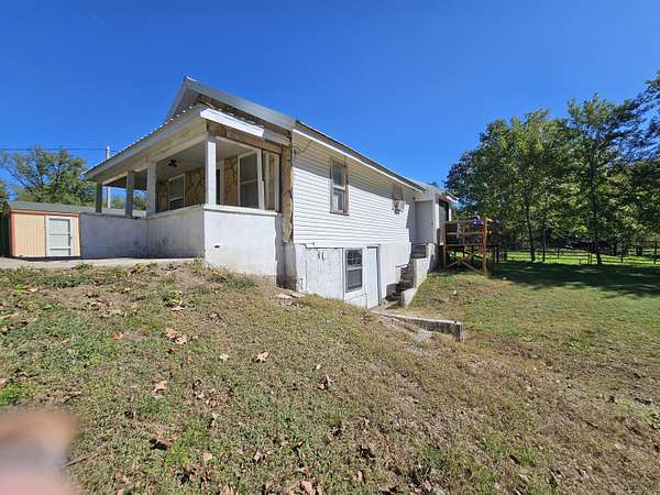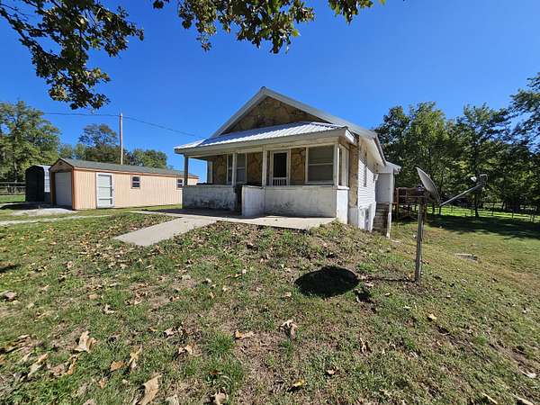 2BD 1BA Rock Farm House on a little over 5 acres SW of Fairview toward Stella. Home setting is fairly private at th1e moment, newer well, newer metal roof, newer septic, covered front porch and newer expansion of concrete sidewalk. Basement is a walk out and 2 size unfiished rooms. There is a 1 car detached carport, a carport as a lean to on the workshop bldg, and a huge workshop/garage/carport/storage container with newer electric system w/ 220, making an awesome shop, wood benches stay, Orange storage shed does not convey. Propane tank is owned and conveys with the property. Property has a wet weather gully. Beautiful setting and ready to have those finishing touches on it to make even better.