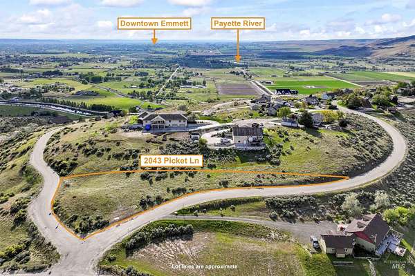 OWNER FINANCE -Premium 3/4-acre corner lot, this exceptional building site captures sweeping, unobstructed views across the rolling hillside-a rare opportunity to secure a view property at a fraction of the cost. OWNER CARRY with just 10% down, making this an outstanding option for buyers seeking flexibility and value. The homesite is ideally positioned to maximize panoramic views from every level, creating the perfect setting for your custom hilltop retreat. Located within a prestigious subdivision of upscale homes, the property offers a peaceful, refined atmosphere while still providing the freedom to bring your own builder and design a residence tailored to your vision. Essential infrastructure is already in place with underground power and community water-no costly well required. Outdoor recreation is just minutes away at Black Canyon Recreation Dam, Montour Wildlife Management Area, and the Payette River, where fishing, kayaking, boating, and floating await. Offering natural beauty and abundant wildlife.