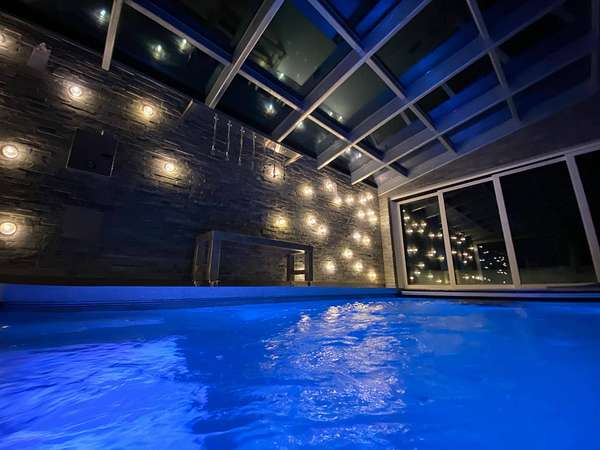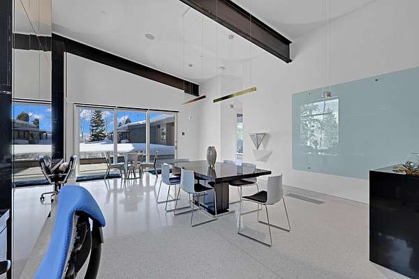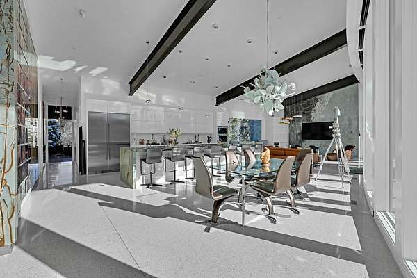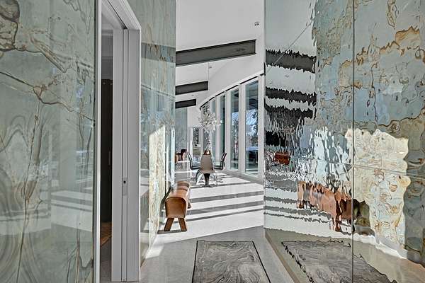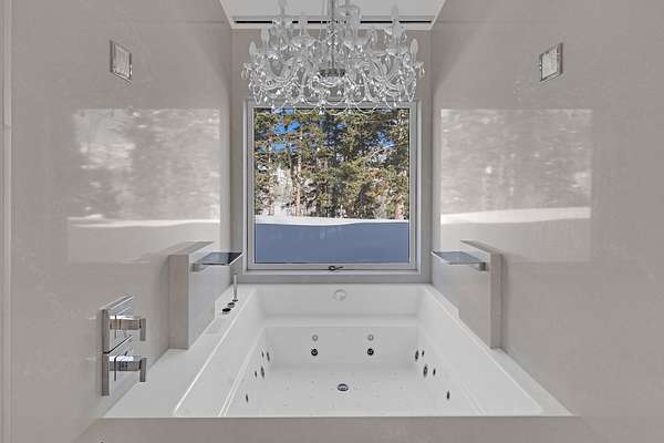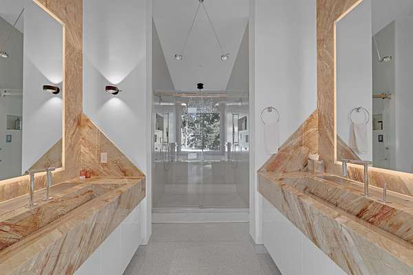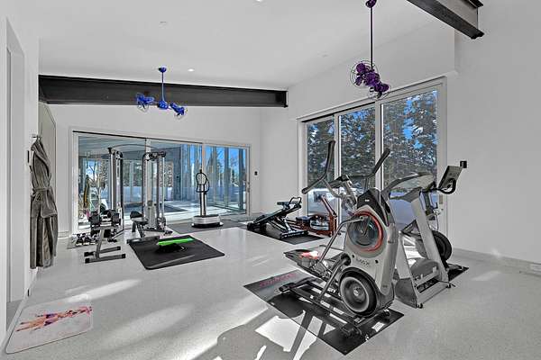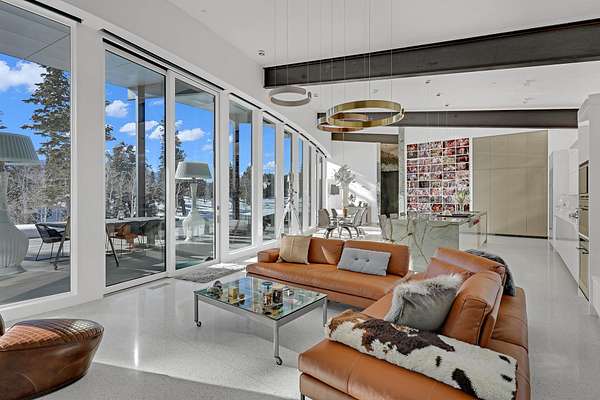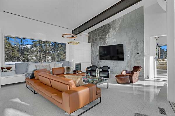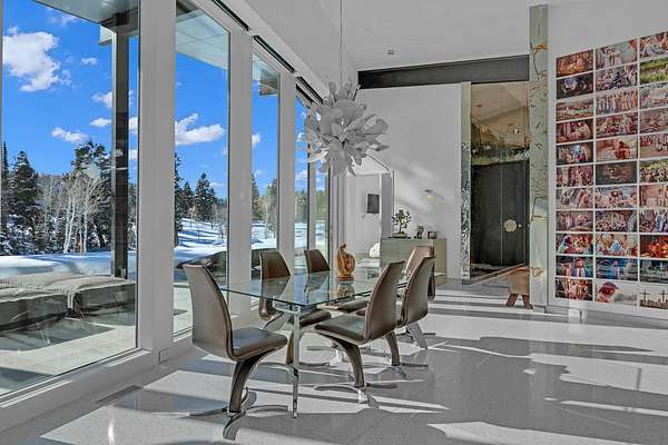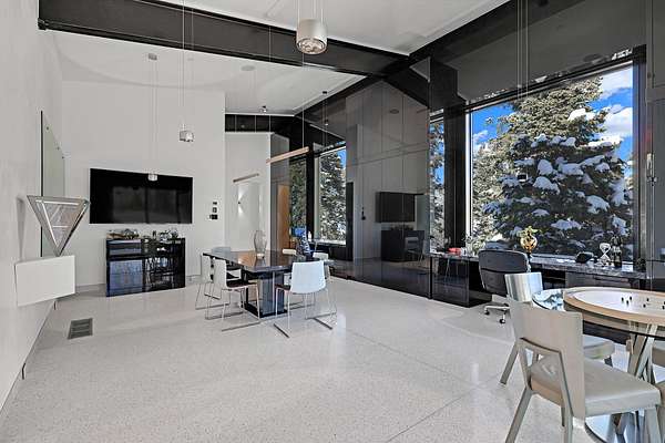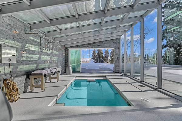 At the heart of the property is a custom-built residence that harmonizes with its natural surroundings while delivering modern comfort and functionality. Expansive glass walls frame stunning views and flood the home with natural light. You'll find terrazzo floors, custom designer finishes, five bathrooms, and indulgent spa features like a sauna, steam room, indoor exercise pool, and state-of-the-art fixtures. The property's design prioritizes self-reliance, independent water rights, a secure bunker, solar-ready infrastructure, ample fuel storage, and monitoring systems, making it fully equipped for off-grid living.