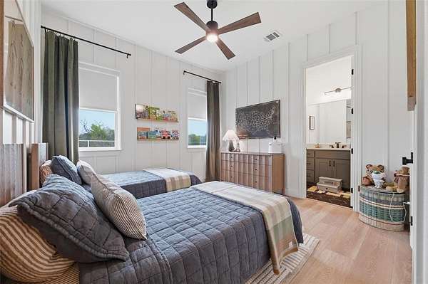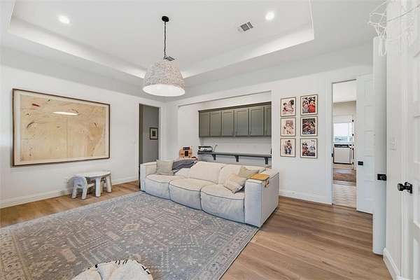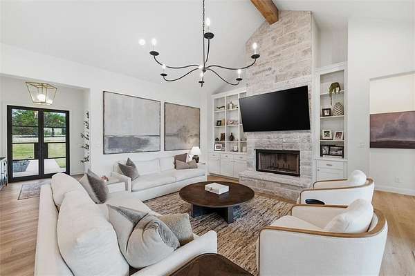 Modern farmhouse under construction on two beautifully wooded acres in the highly sought-after Woodland Lakes community in Peaster. This thoughtfully designed single-story home features an open-concept layout with 4 bedrooms, 3.5 bathrooms, a dedicated office, and a spacious game room—perfect for both everyday living and entertaining.