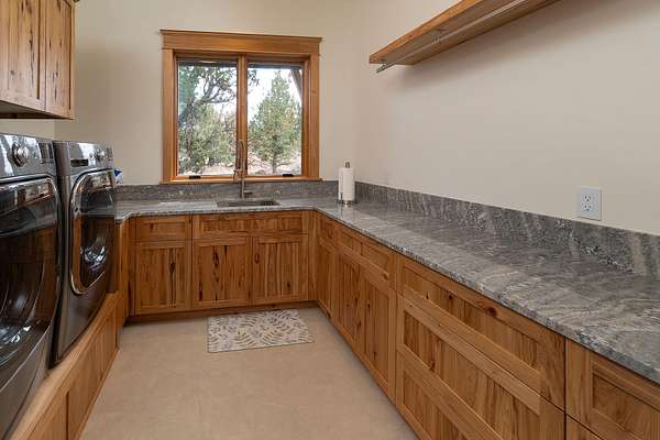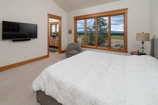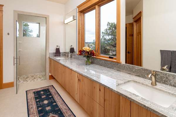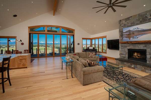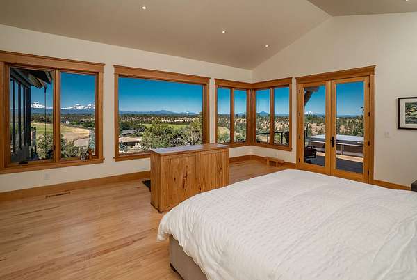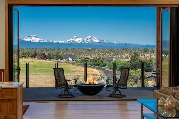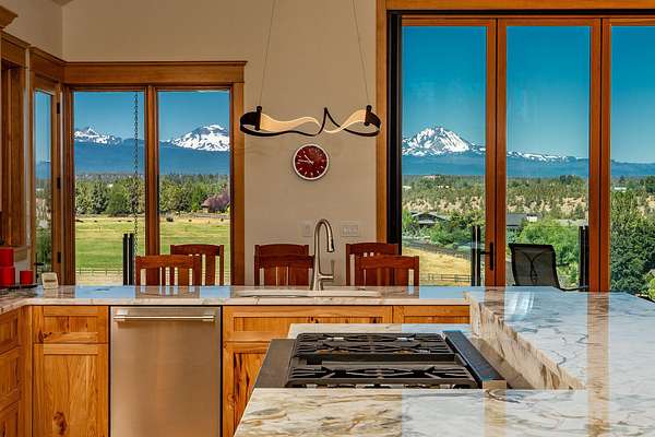 Experience timeless comfort and panoramic Cascade views at this stunning 3,743 sq ft single-level home on 3.61 acres. Thoughtfully designed with bright finishes andmostly ADA-compliant features, it offers a spacious primary suite with soaking tub, curbless tile shower, and large walk-in closet. A second ensuite and office/3rd bedroomprovide flexible space. The gourmet kitchen boasts Thermador appliances--including a built-in coffee maker--solid surfaces, and a walk-in pantry with BBQ deck access.Enjoy indoor-outdoor living with infrared heaters, swim spa, sauna, and hot tub. No HOA or CC&Rs. Dual-zone heating, backup generator, 3-car garage plus bike garage,hobby room, and a 711 sq ft detached shop with full bath complete the package. True mountain and river views make this a rare Bend retreat.