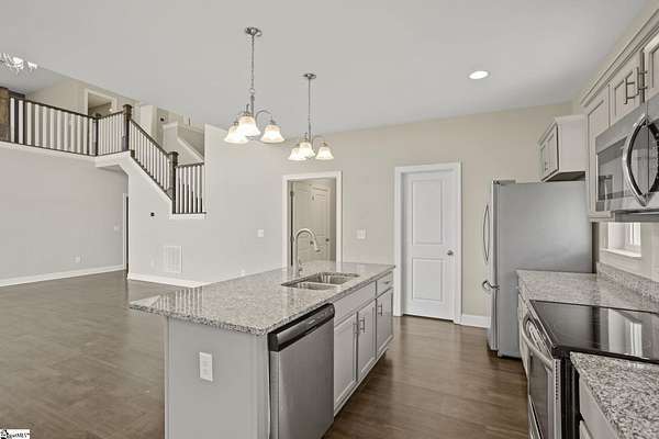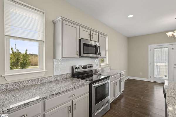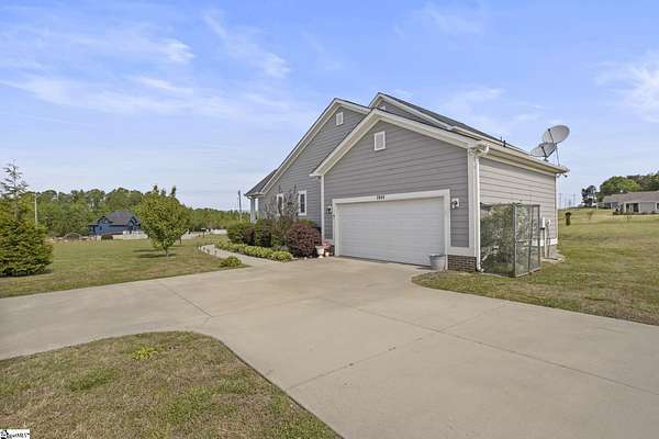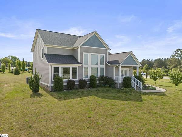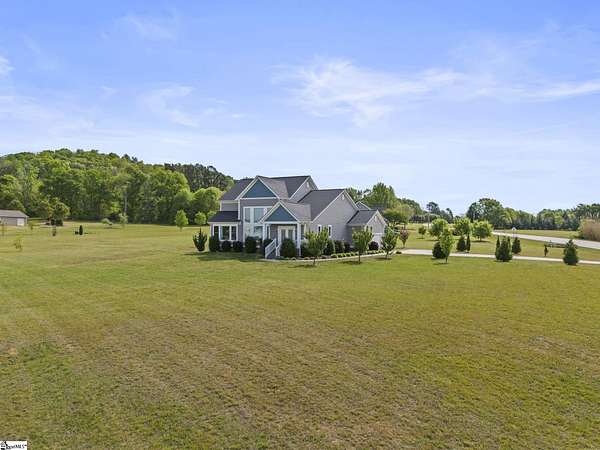 Call Denise Grout at 864-704-7711 for more information. Discover country living at its finest on this serene 2.5 acre retreat offering scenic mountain views, a level lot, and a peaceful setting that feels worlds away yet remains comfortably accessible. This beautiful two story home blends modern comfort with timeless charm, featuring 3 bedrooms, 2.5 baths, and an open floor plan designed for effortless entertaining. Step into the impressive great room, where a soaring cathedral ceiling and abundant natural light create a warm, inviting atmosphere. The kitchen is a true centerpiece, complete with a large island, stainless steel appliances, and an extra large walk in pantry. The refrigerator conveys, making move in easy. The primary suite on the main level is a private haven, offering large windows that frame the mountain views. The ensuite bath includes a double sink vanity, a spacious shower, and a huge walk in closet. Just off the back door, a flexible living room/office area provides the perfect spot for work, hobbies, or relaxation. Convenience continues with a generous laundry room located off the garage entry The washer and dryer convey, and a fully insulated garage creates year round comfort. The home also includes an electrical connection for a full house generator, adding peace of mind. Upstairs, a spacious loft area offers additional living space, along with two generously sized bedrooms and a full bath. Throughout the main living areas, easy care vinyl plank tile provides durability ideal for children and pets. Double hung tilt out windows enhance energy efficiency and make cleaning a breeze. With its quiet setting, mountain backdrop, and thoughtful design, this property delivers the perfect blend of comfort, beauty, and functionality. Whether you’re seeking a peaceful escape or a place to gather with family and friends, this home is ready to welcome you.