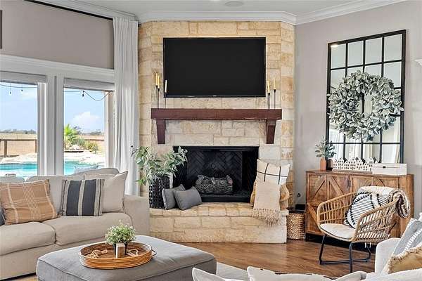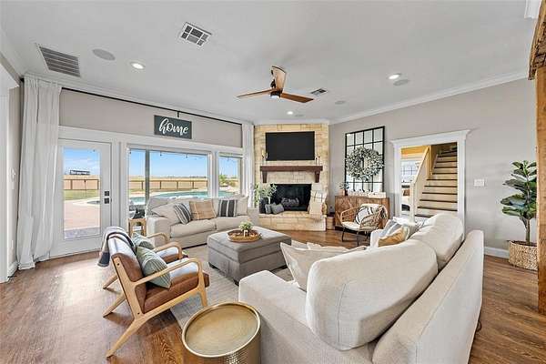 Description: Welcome to this exquisite countryside home, situated on an Ag exemption, 10 acre lot, that offers the perfect blend of luxurious living and natural serenity. Stepping into the heart of the home, an open kitchen awaits, complete with top-of-the-line appliances, granite countertops, and an expansive island that's perfect for both prepping a meal and casual gatherings. The adjacent living and dining area boasts panoramic views of the lovely sunrise or sunset, creating a seamless connection between indoor and outdoor spaces. With 5 bedrooms and 3.5 baths, there's ample space for both family and guests. The master suite downstairs features elegant touches and a spa-like ensuite bath that beckons you to unwind after a long day. For those who love to entertain, this property offers an outdoor oasis. A generously sized back patio and gunite pool invites you to unwind and bask in the tranquility of your surroundings. Whether you're hosting a barbecue for friends or enjoying a quiet morning coffee, this space is the ultimate retreat. Along with the outdoor oasis there is a slab ready for your custom built shop. The allure of country living is fully realized here, where you can embrace the great outdoors at every turn! Nestled in the heart of nature's beauty, this property offers an idyllic retreat from the hustle and bustle of city life.