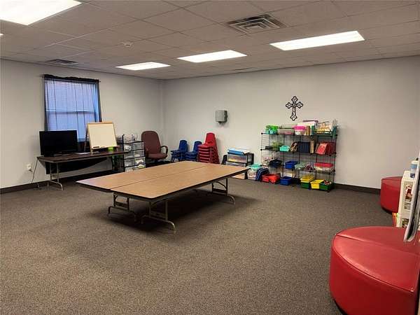 Versatile church campus offering various vacant rooms for lease for a multitude of uses. Lease one or multiple spaces. Perfect for small businesses or non-profit, educational purposes, workshops, seminars or training sessions, schools, educational institutions, fitness classes & community organizations. Also ideal for hosting conferences, support groups & community gatherings. Several large open areas perfect for various activities like outdoor games, team-building exercises & events, scout meetings, summer camps, vacation Bible school & theater classes. Individual rooms range in size from 437 sf up to 952sf. Elevator available for 2nd floor access. Rents include all utilities. 8 spaces on the 2nd floor, 1 space on the first floor. The main sanctuary and commercial kitchen area also available for lease on a limited and shared bases.